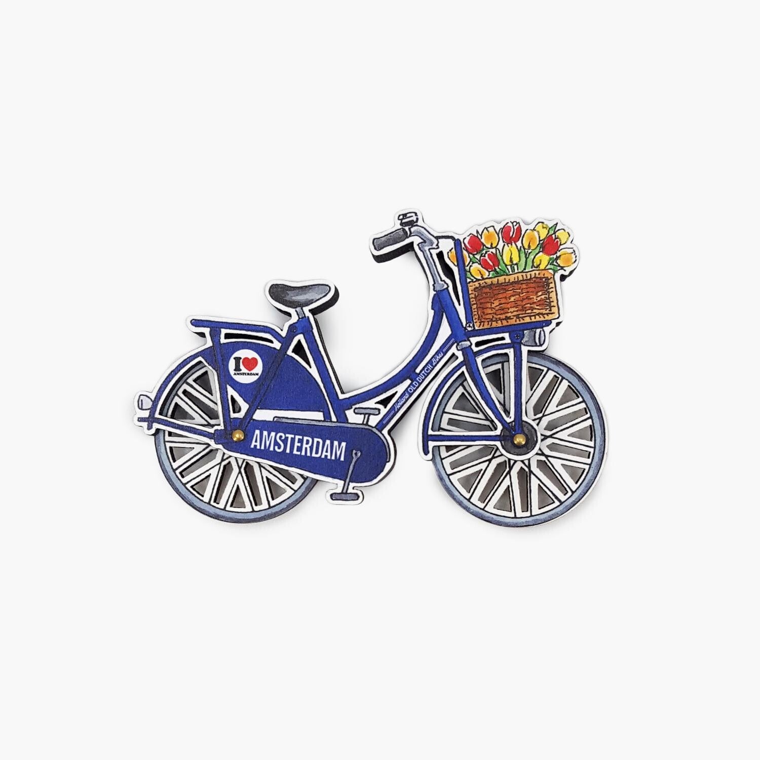 12074 - Magneet mdf fiets draaiende wielen Amsterdam - blauw