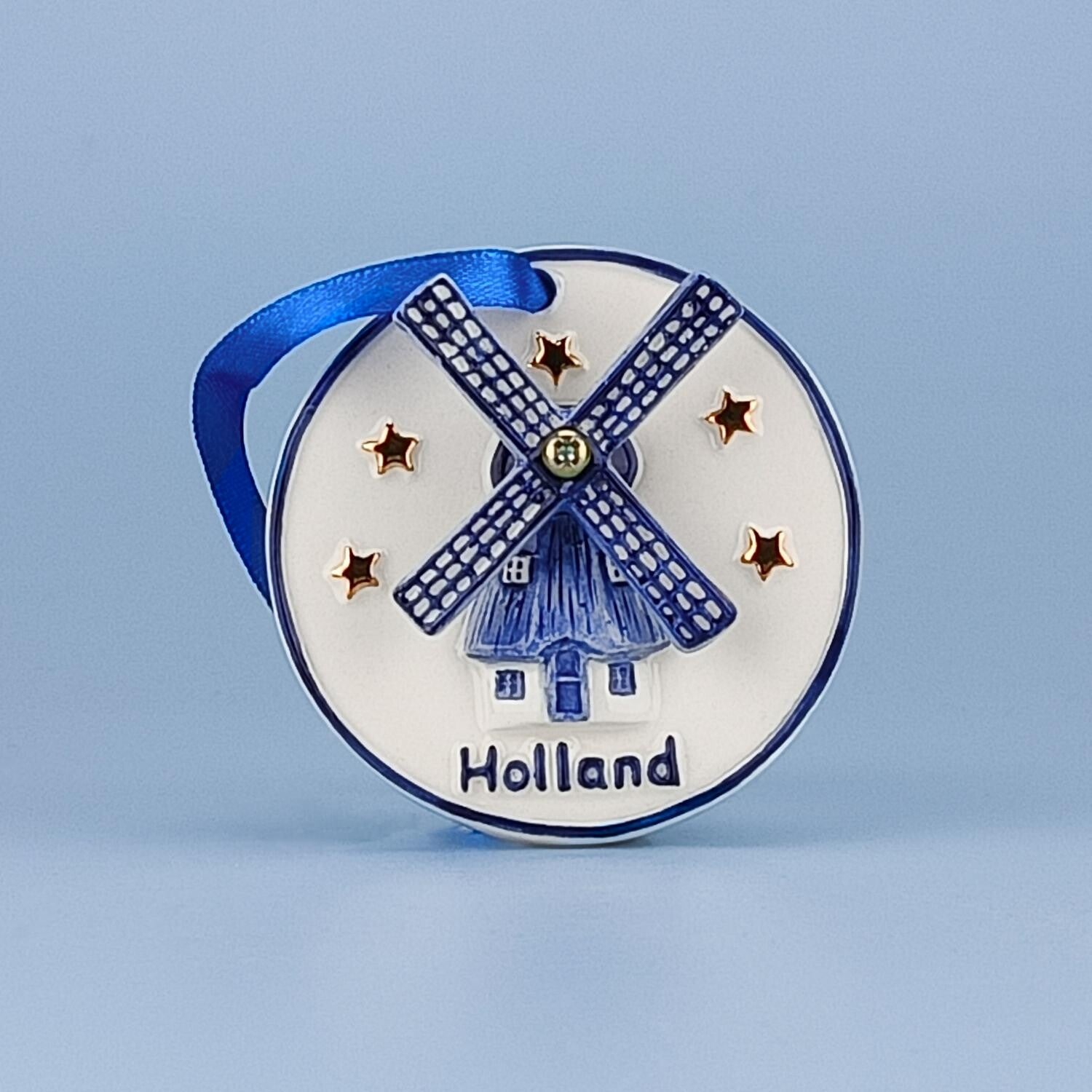16947 - Kerstornament keramiek munt molen - delftsblauw/goud