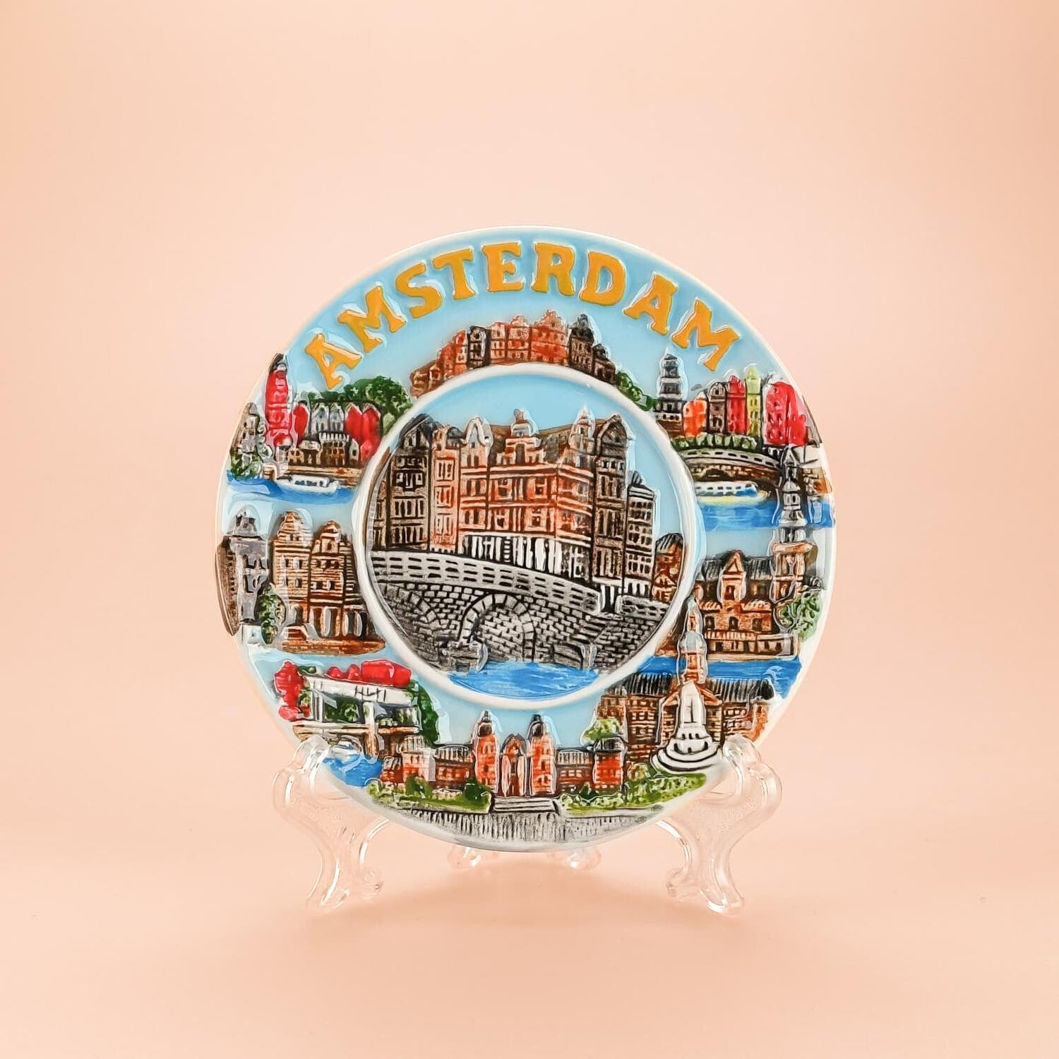 2115 - Bord grachtenhuisjes compilatie 10 cm Amsterdam - multicolor